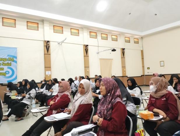 Istri Penjabat Gubernur Kepulauan Bangka Belitung, Sri Utami Ridwan Djamaluddin memberikan materi pengajaran kelas sosial dalam rangka penguatan kompetensi guru SLB dan Tenaga PLA se-Bangka.