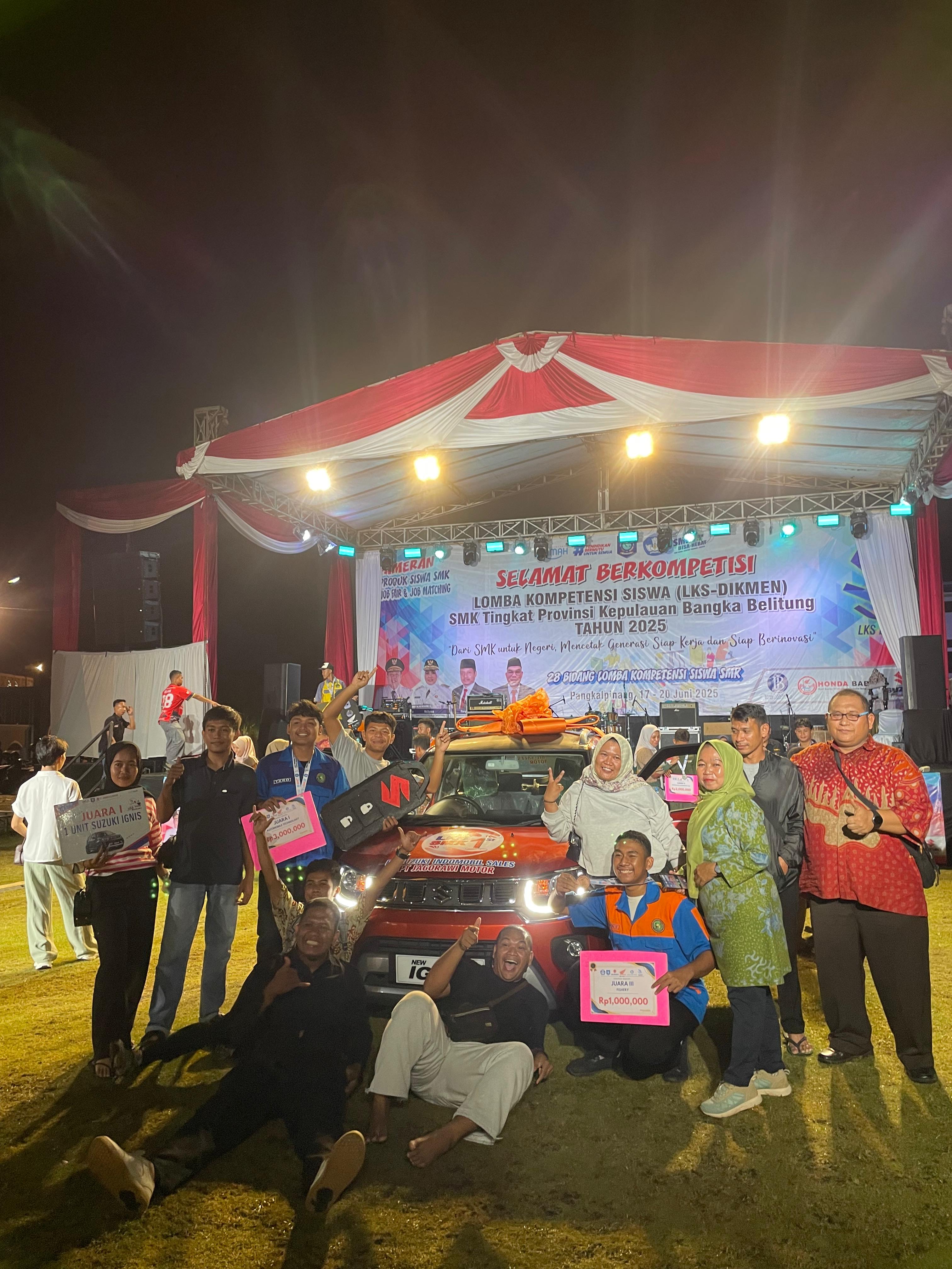 "Selamat kepada para juara. Rizky siswa SMK 2 Tanjung Pandan yang berhaail meraih mobil semoga menjadi motivasi bagi adik-adik lainnya agar terus semangat menunjukkan kemampuan nya sehingga nanti semakin matang lagi memasuki dunia kerja dan dunia usaha," katanya.