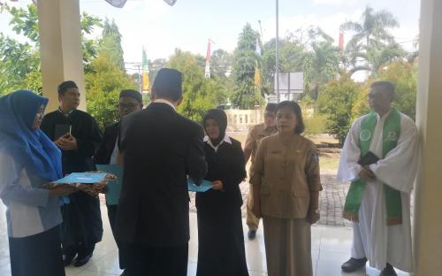Dihadapan Kepala Dinas mereka telah melakukan pengangkatan sumpah jabatan sesuai dengan keyakinan agamanya di atas kitab suci dihadapan seluruh pejabat eselon dilingkungan Dinas Pendidikan Prov. Kep. Bangka Belitung.