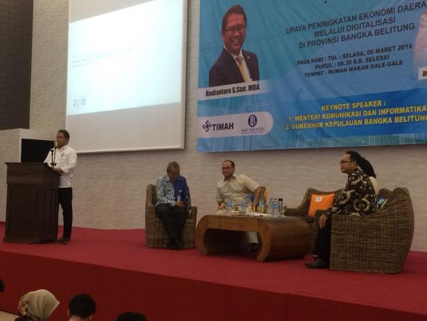 Menteri Komunikasi dan Informatika RI, Rudiantara menginginkan agar seluruh siswa dan mahasiswa Bangka Belitung cerdas dalam penggunaan teknologi digitalisasi, khususnya terhadap perkembangan informasi yang terus bergerak cepat, hal itu disampaikannya pada saat memberikan pengarahan kepada 450 Mahasiswa pada kegiatan Seminar Go Digitalisasi di Gale-Gale Ballroom, Pangkalpinang, Selasa (6/3/2018) siang hari.