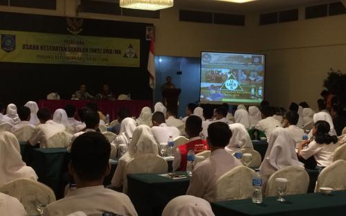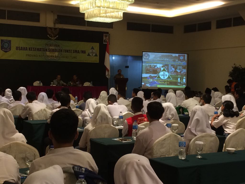 Pangkalpinang, Dinas Pendidikan Provinsi Kepulauan Bangka Belitung melalui Bidang SMA melaksanakan Kegiatan Pelatihan Usaha Kesehatan Sekolah (UKS) SMA/MA di Hotel Puncak, Pangkapinang, (26/3). Sebanyak 195 siswa SMA/MA se Bangka Belitung hadir dalam kegiatan dimaksud.