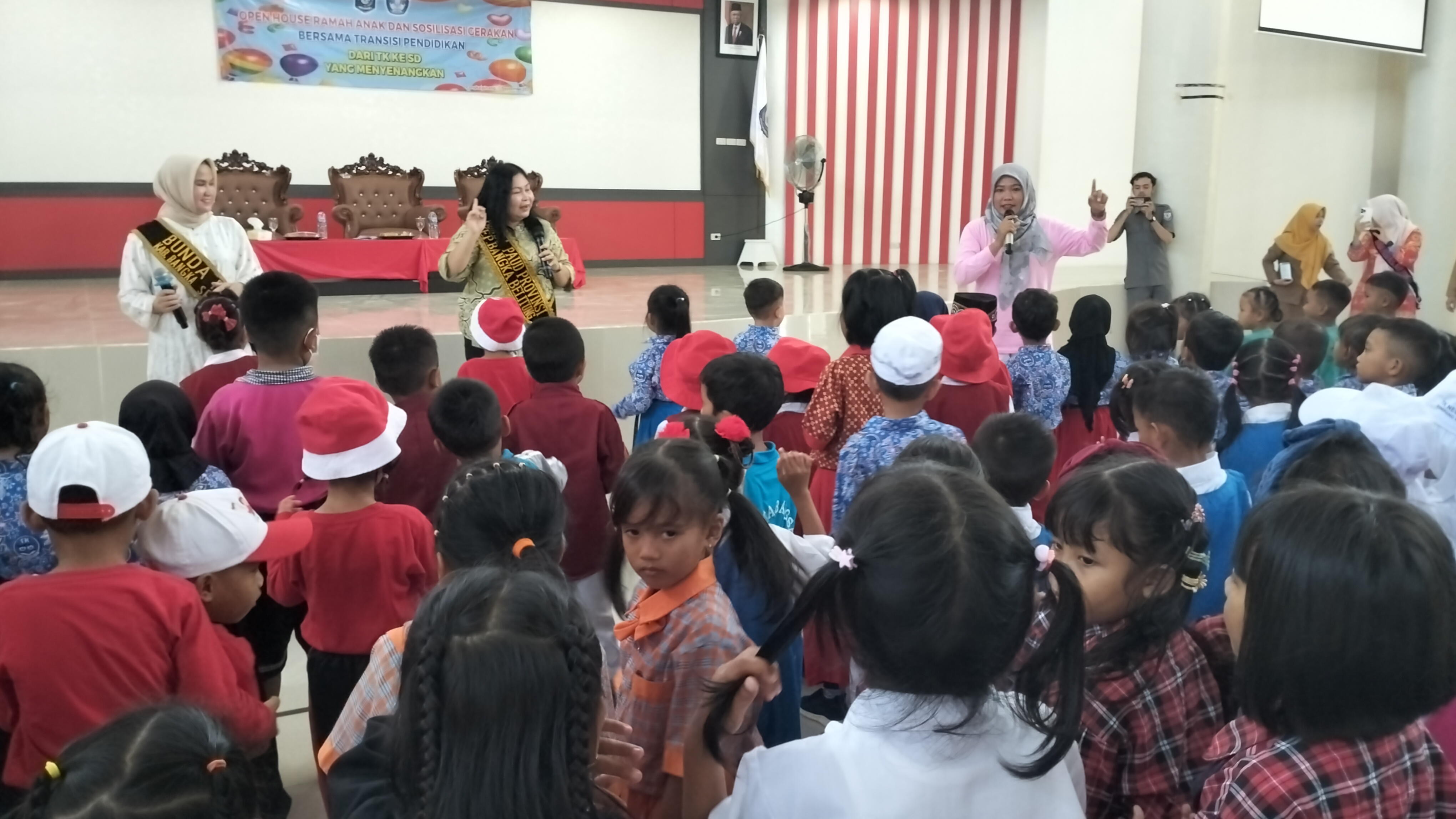 Ratusan anak PAUD tampak antusias mengikuti kegiatan ini hingga mereka bernyanyi bersama dengan Bunda PAUD Provinsi sambil mengikuti irama musik lagu berjudul "Satu-Satu Aku Sayang Ibu".