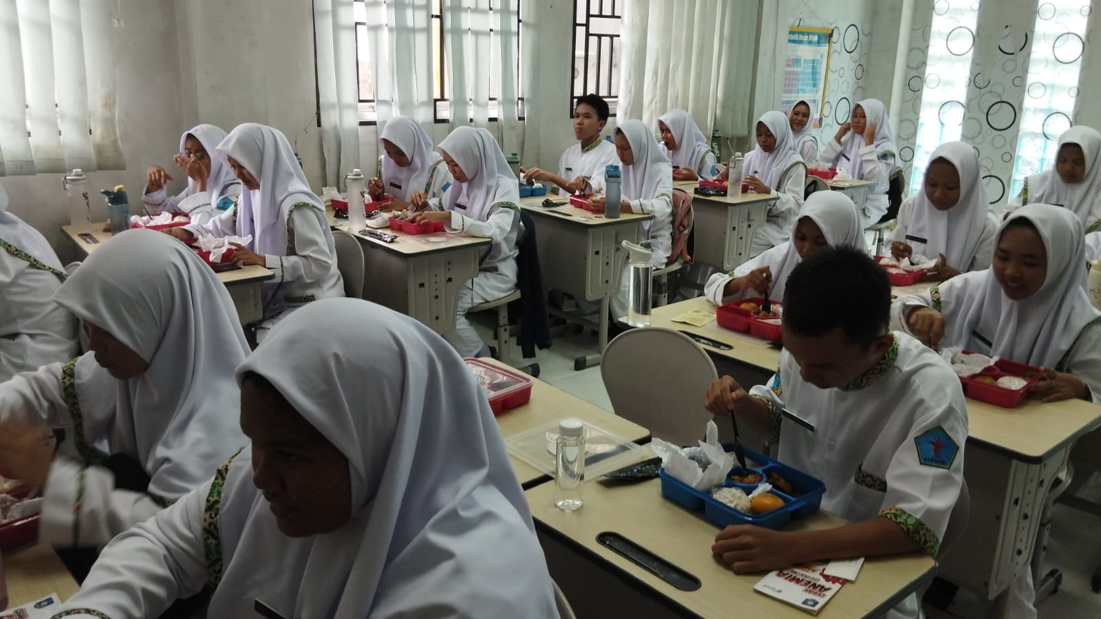SMK N 5 Pangkalpinang menjadi sekolah pertama untuk tingkatan SMA sederajat yang dijadikan sebagai uji coba makan siang bergizi gratis.
