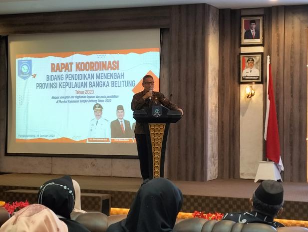 Dinas Pendidikan Bangka Belitung menggelar Rapat Koordinasi Pembinaan Tenaga Kependidikan Jenjang SMA/SMK/SLB se-Babel yang diselenggarakan di lantai 3 Ruang Pertemuan Pasir Padi, Kantor Gubernur Kepulauan Bangka Belitung, Kamis (19/01/2023).