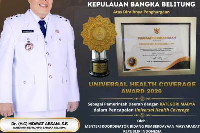SELAMAT KEPADA PEMERINTAH PROVINSI KEPULAUAN BANGKA BELITUNG ATAS DIRAIHNYA PENGHARGAAN UNIVERSAL HEALTH COVERAGE AWARD 2026