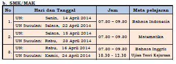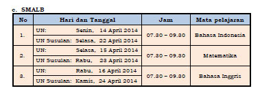 | Pelaksana | SMA/MA, SMALB, SMK |