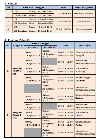 UJIAN NASIONAL JENJANG SMA/MA, SMK, SMALB, PAKET C