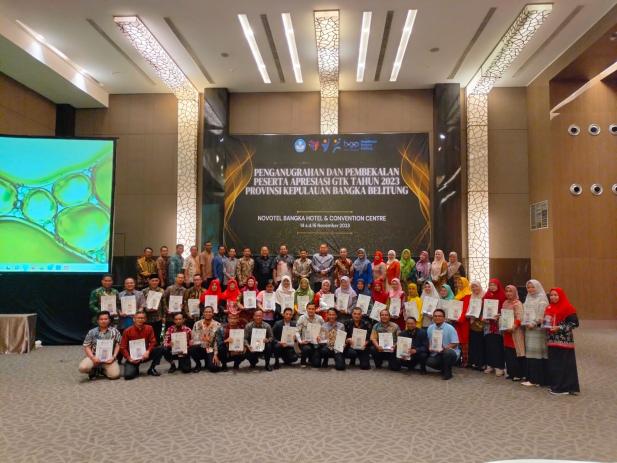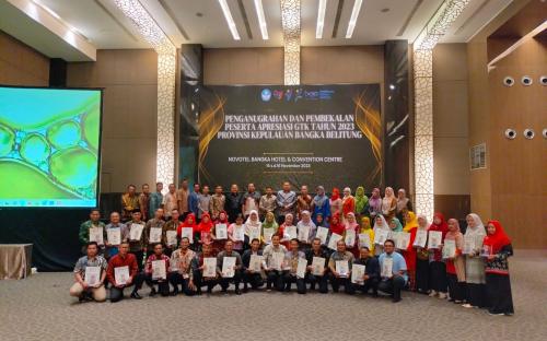 Sebanyak 13 Guru dan Tenaga Kependidikan Terbaik mewakili Bangka Belitung mendapatkan Kategori Inovatif yang diumumkan pada malam Penganugerahan dan Pembekalan Peserta Apresiasi Guru dan Tenaga Kependidikan yang diselenggarakan oleh Balai Besar Guru Penggerak (BBGP) Provinsi Bangka Belitung, di Hotel Novotel, Selasa Malam(14/11/2023).