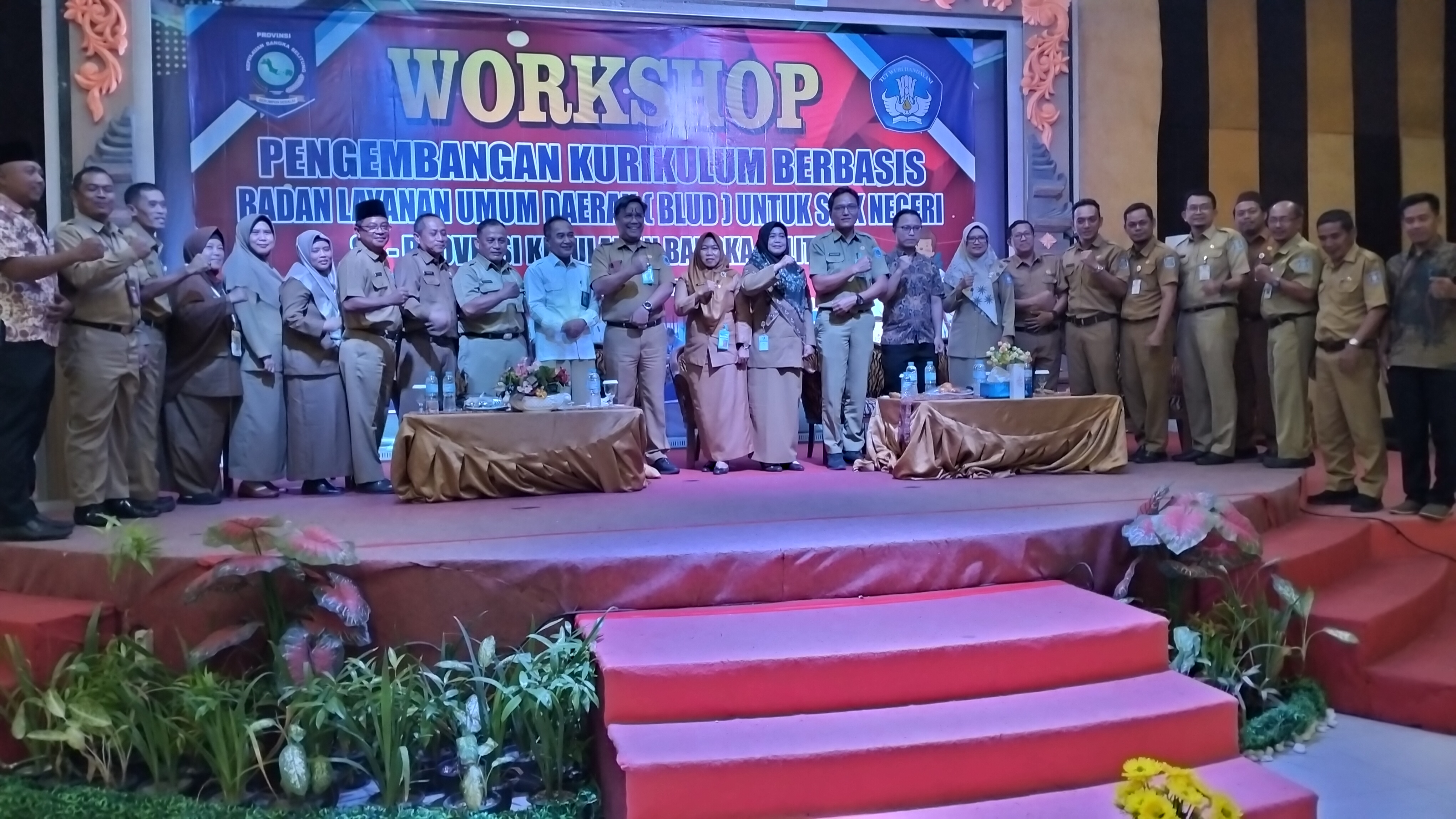 Pelaksanaan Workshop Pengembangan Kurikulum Berbasis Badan Layanan Umum Daerah untuk SMK Negeri se-Babel ini berlangsung selama tiga hari mulai tanggal 13 sampai dengan 15 November 2023, di Hotel Granvella, Pangkalanbaru (13/11/2023), dengan peserta yang hadir sebanyak 118 orang, yang terdiri dari 36 orang Kepala Sekolah SMK Negeri se-Babel, 36 orang Kepala BLUD, 36 orang Bendahara Pengelola BLUD, dan 10 orang dari Cabang Dinas Pendidikan Wilayah I, II, III, IV, dan V.