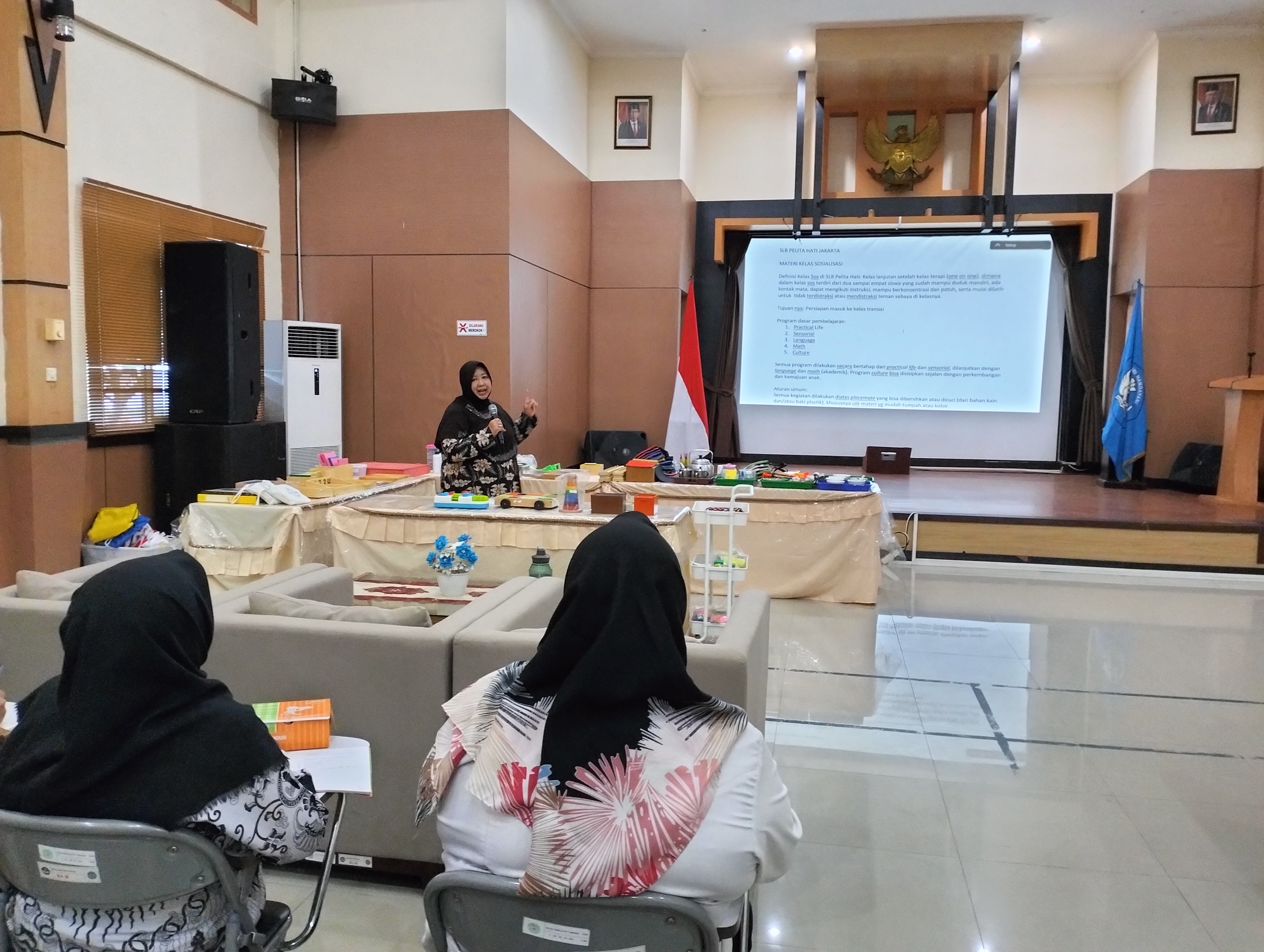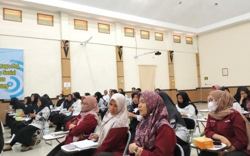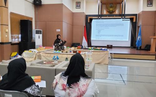 Istri Penjabat Gubernur Kepulauan Bangka Belitung, Sri Utami Ridwan Djamaluddin memberikan materi pengajaran kelas sosial dalam rangka penguatan kompetensi guru SLB dan Tenaga PLA se-Bangka.