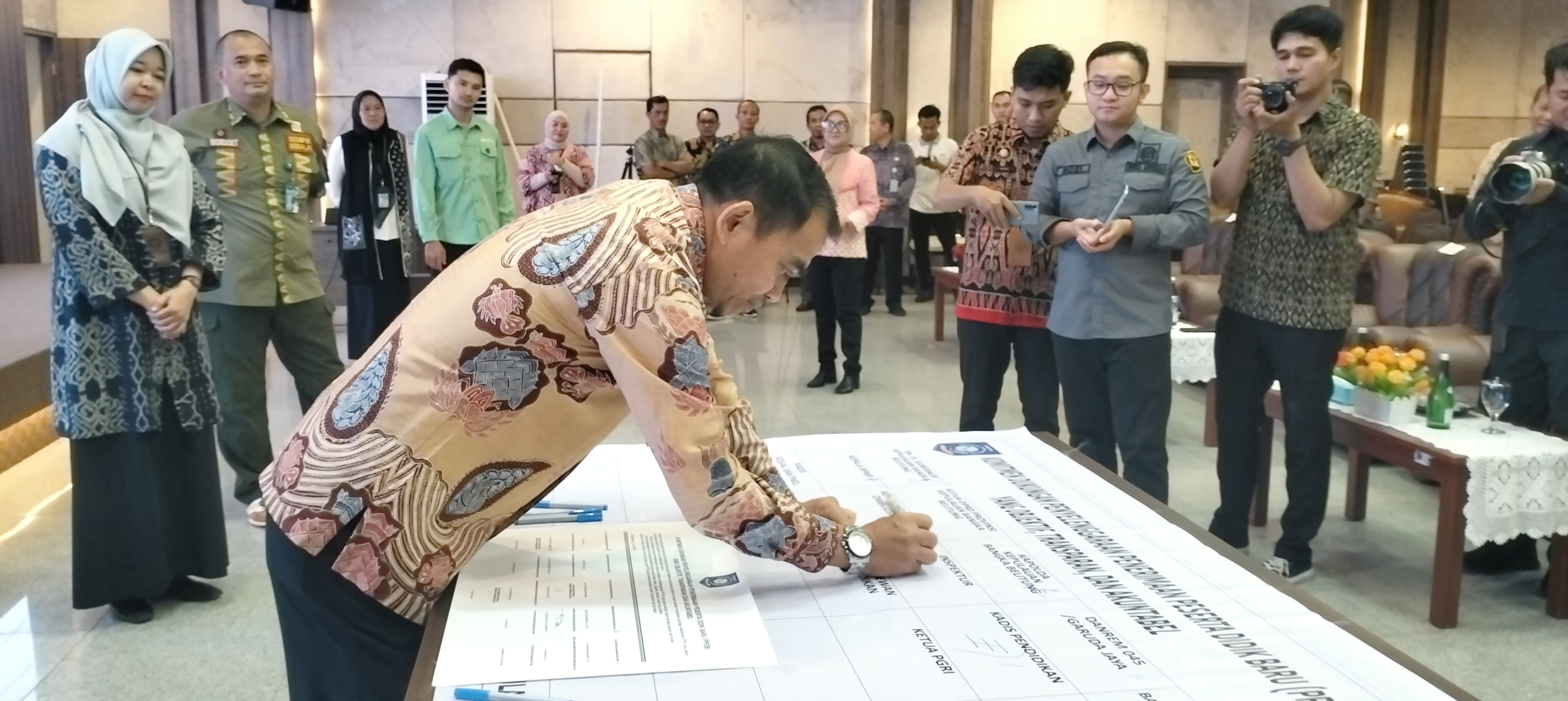 Mewakili Penjabat Gubernur Kepulauan Bangka Belitung (Babel), Asisten III Bidang Administrasi Umum Setda Pemprov Babel, Yunan Helmi menandatangani Komitmen Dukungan Penyelenggaraan Penerimaan Peserta Didik Baru (PPDB) Tahun 2024, dalam upaya penyelenggaraan PPDB yang Objektif, Transparan, dan Akuntabel. Acara penandatanganan berlangsung di Ruang Pertemuan Pasir Padi Kantor Gubernur Kepulauan Bangka Belitung, Kamis (20/6/2024).