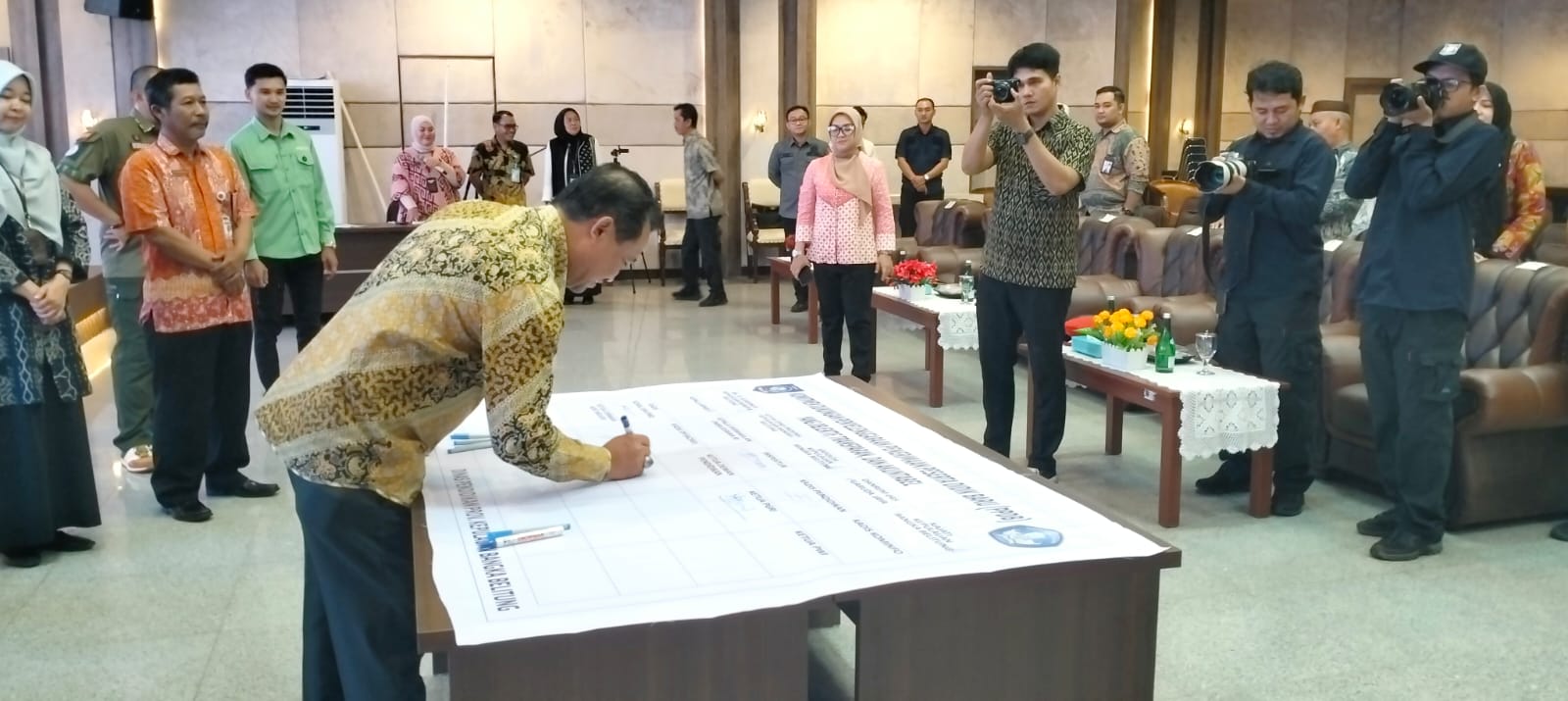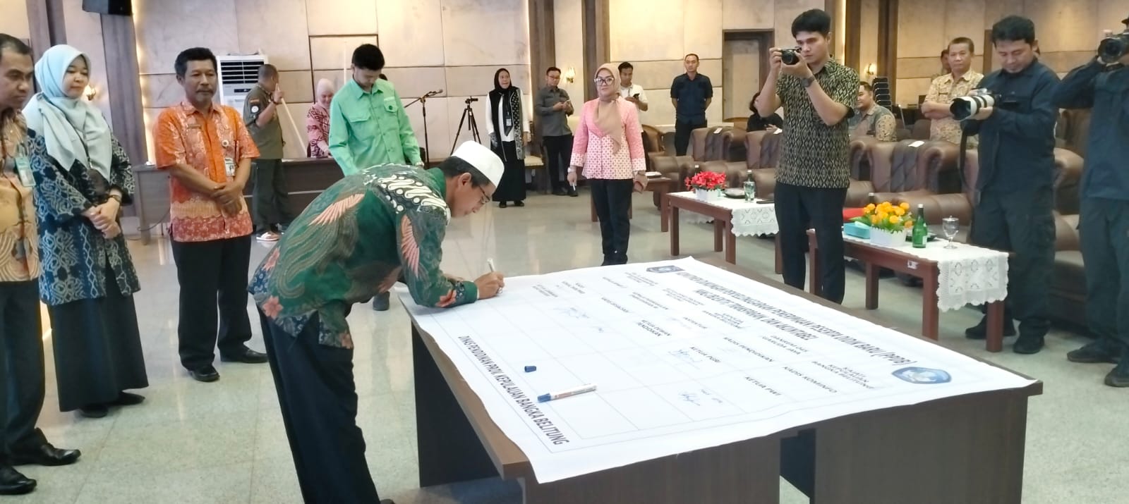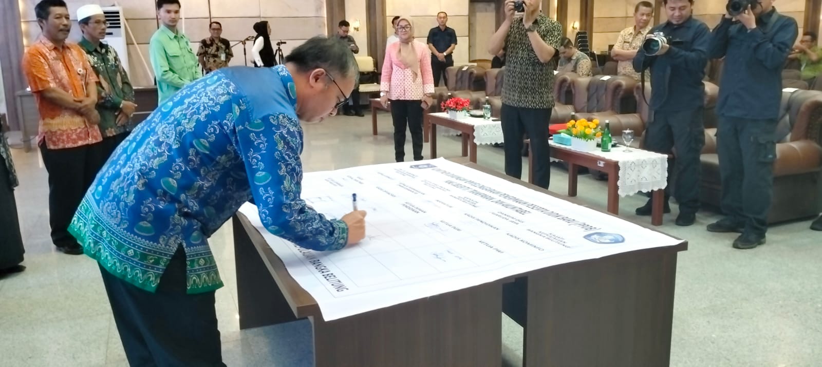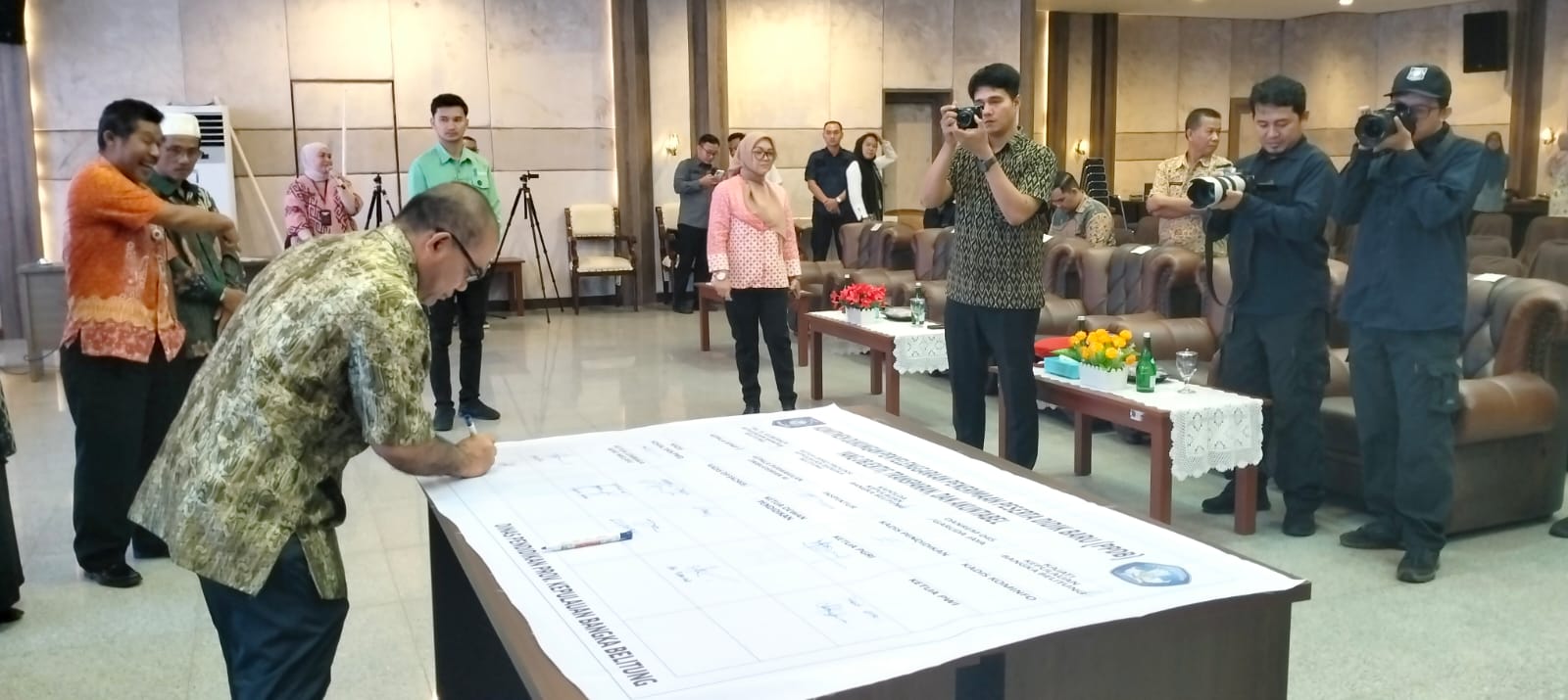 Hadir dan turut menandatangani Komitmen Dukungan Penyelenggaraan Penerimaan Peserta Didik Baru (PPDB) Tahun 2024 ini Asisten III Bidang Administrasi Umum Sekretariat Daerah Pemerintah Provinsi Kepulauan Bangka Belitung, Perwakilan Anggota Forum Koordinasi Pimpinan Daerah Provinsi Kepulauan Bangka Belitung (Kejaksaan Tinggi Prov.Kep.Babel, Kapolda Babel, Danrem 04 Babel), Perwakilan Ombudsman Prov. Babel, Kepala Dinas Pendidikan Prov. Kep. Babel, Ketua PGRI Babel, Ketua Musyawarah Kerja Kepala Sekolah (MKKS) SMA Babel, Perwakilan Musyawarah Kerja Pengawas Sekolah SMA/SMK Babel, Ketua Dewan Pendidikan Prov. Kep. Babel, Perwakilan Perangkat Daerah Prov. Kep. Babel ( BPMP Prov. Kep. Babel, DP3ACSKB Prov. Kep. Babel, Dinsos Prov Kep Babel), Sekretaris Dinas Pendidikan Prov.Kep. Babel, Kepala Bidang SMK Dinas Pendidikan Prov.Kep. Babel, Plh, Kepala Bidang SMA Dinas Pendidikan Prov.Kep. Babel, Kepala Bidang Guru dan Tenaga Kependidikan Dinas Pendidikan Prov.Kep. Babel, Plh. Kepala Bidang Pendidikan Khusus Dinas Pendidikan Prov.Kep. Babel, Kepala Balai Teknologi Informasi Komunikasi Pendidikan (BTIKP) Dinas Pendidikan Prov. Kep. Babel, Kepala Cabang Dinas Pendidikan Wilayah I, Perwakilan Kepala Cabang Dinas Pendidikan Wilayah II, Kepala Cabang Dinas Pendidikan Wilayah III, Kepala Cabang Dinas Pendidikan Wilayah IV, dan Kepala Cabang Dinas Pendidikan Wilayah V.