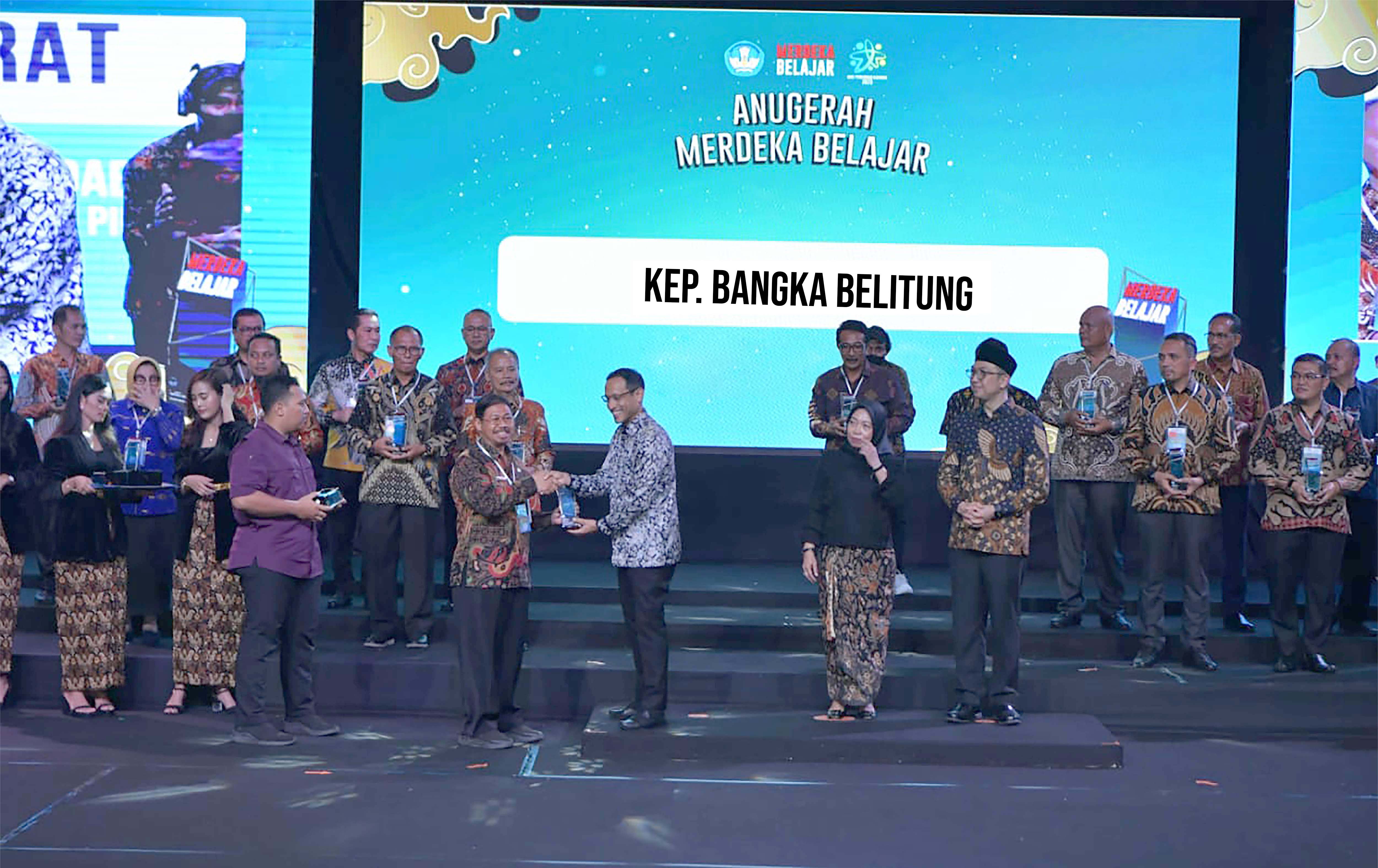 Penghargaan diberikan langsung oleh Menteri Pendidikan Riset dan Teknologi, Nadiem Makarim dan diterima oleh Kepala Dinas Pendidikan Provinsi Kepulauan Bangka Belitung, Ervawi, mewakili Penjabat Gubernur Kepulauan Bangka Belitung, pada puncak Peringatan Bulan Merdeka Belajar dalam rangka Peringatan Hari Pendidikan Nasional di Gedung Trimurti, Prambanan, Yogyakarta, Senin malam, 29 Mei 2023.