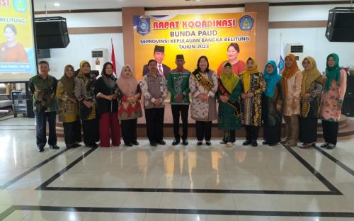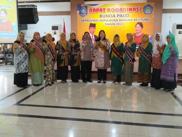 Penjabat (Pj) Gubernur Kepulauan Bangka Belitung, Suganda didampingi Bunda Maya Suganda, Bunda PAUD Provinsi Kepulauan Bangka Beliting mengajak kepada seluruh kelompok kerja Bunda PAUD Kabupaten/Kota, IGTKI, IGRA, HIMPAUDI, Dinas Pendidikan Kabupaten/Kota, Bunda PAUD Kecamatan bergerak bersama wujudkan pendidikan anak usia dini (PAUD) berkualitas di Kepulauan Bangka Belitung.
