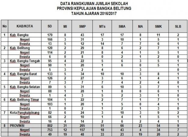 Data Rangkuman Jumlah Satuan Pendidikan T.P 2016/2017