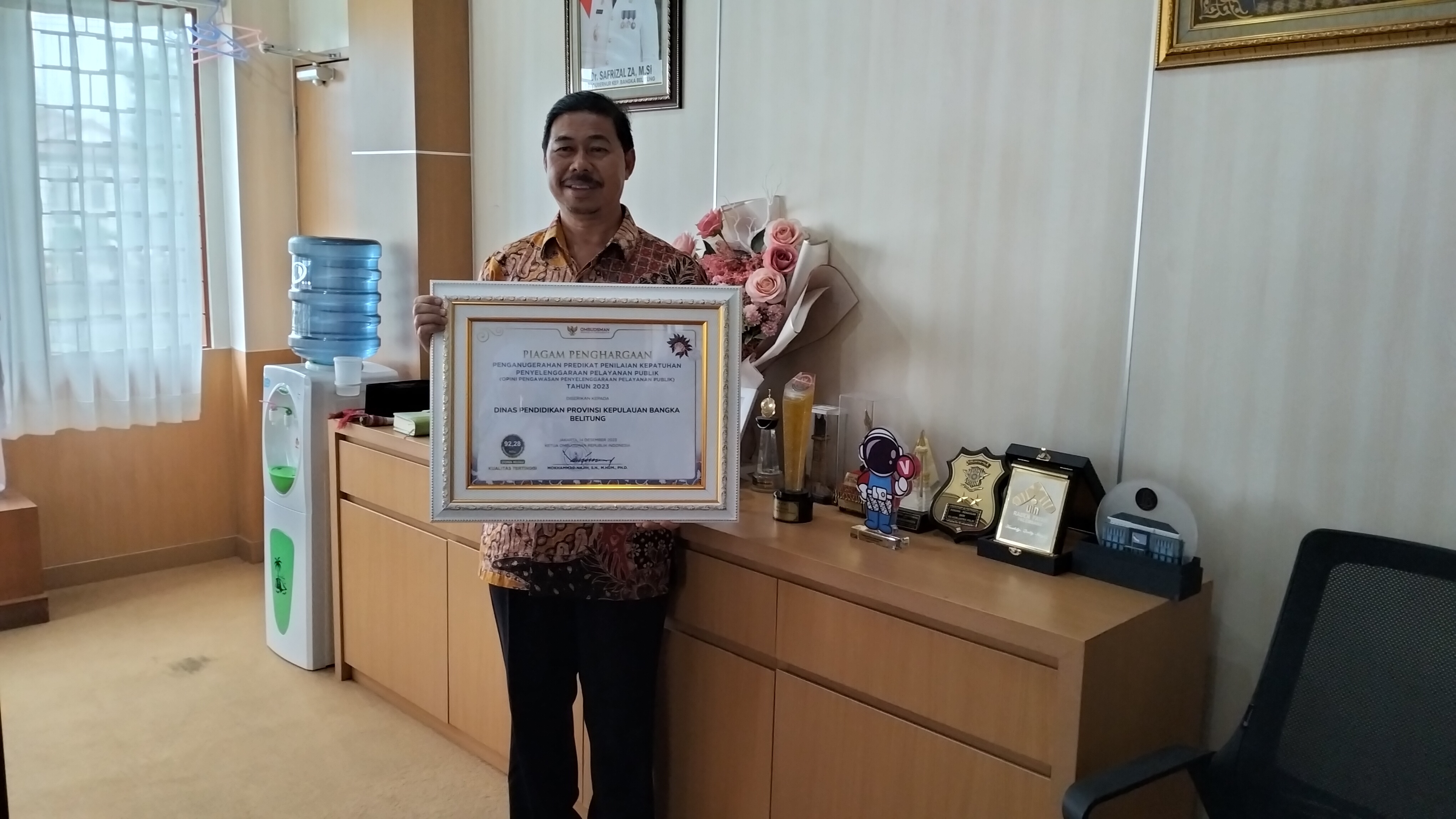Penghargaan ini diterima secara langsung oleh Ervawi, Kepala Dinas Pendidikan Provinsi Kepulauan Bangka Belitung, di Ruang Pasir Padi Kantor Gubernur Kepulauan Bangka Belitung, Kamis (4/01/2024).