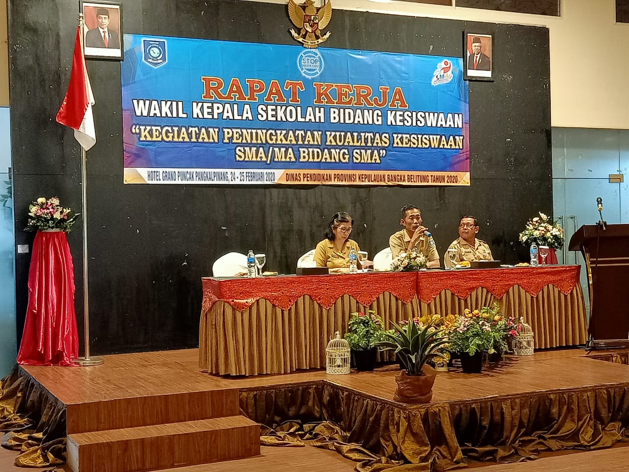 Kegiatan Rapat Kerja Wakil Kepala Sekolah SMA/MA se-Babel yang bertemakan “Peningkatan Kualitas Kesiswaan” dibuka secara resmi oleh Kepala Dinas Pendidikan Provinsi Kepulauan Bangka Belitung, Muhammad Soleh, yang diwakili oleh Kepala Bidang SMA, Danu Sutara.