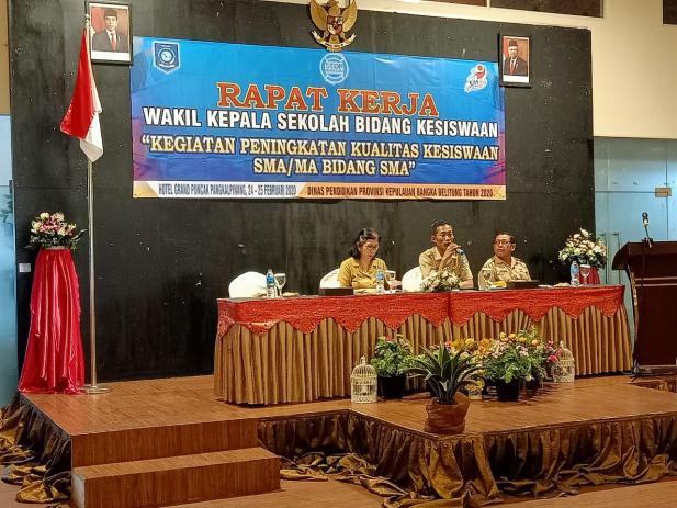 Dinas Pendidikan Provinsi Kepulauan Bangka Belitung menggelar Rapat Kerja Wakil Kepala Sekolah Jenjang SMA/MA se-Babel bertempat di Ruang Pertemuan Hotel Puncak Pangkalpinang, Senin,(24/2).