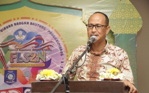 PANGKALPINANG - Dinas Pendidikan Provinsi Kepulauan Bangka Belitung melalui Sekretariat menyelenggarakan Festival dan Lomba Seni Siswa Nasional (FLS2N) jenjang Sekolah Dasar dan Sekolah Menengah Tahun 2017 dibuka secara resmi oleh Gubernur Kepulauan Bangka Belitung, Rustam Effendi yang diwakilkan oleh Asisten III Bidang Administrasi Umum K.A. Tajudin, SH di Hotel Aksi Natural Resort (Jum’at, 5/5/2017) sore hari.