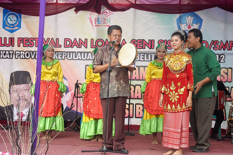 Pangkalpinang -- Gubernur Bangka Belitung, Dalam hal ini diwakili oleh Staf Ahli Bidang SDM H. Amirul Mukminin membuka secara resmi Festival dan Lomba Seni Siswa Nasional (FLS2N) Tingkat SD/SMP Provinsi Kepulauan Bangka Belitung tahun 2012