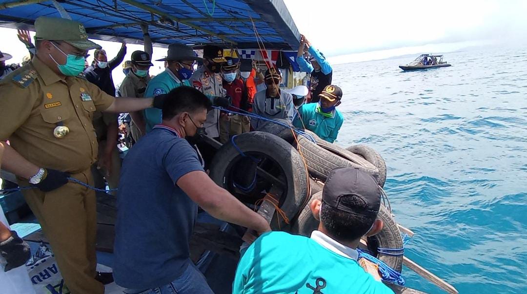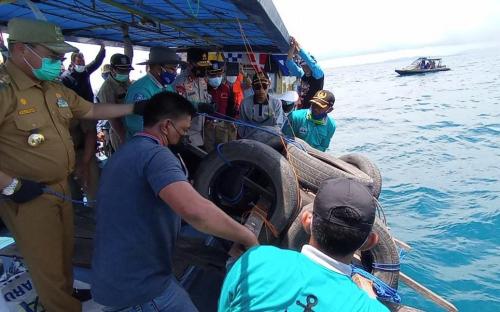 Gubernur Kepulauan Bangka Belitung, Erzaldi Rosman melakukan penurunan Rumpon tepat di posisi Karang Kapal Utara Pulau Semujur, Perairan Laut Bangka , Selasa (23/3/2021).