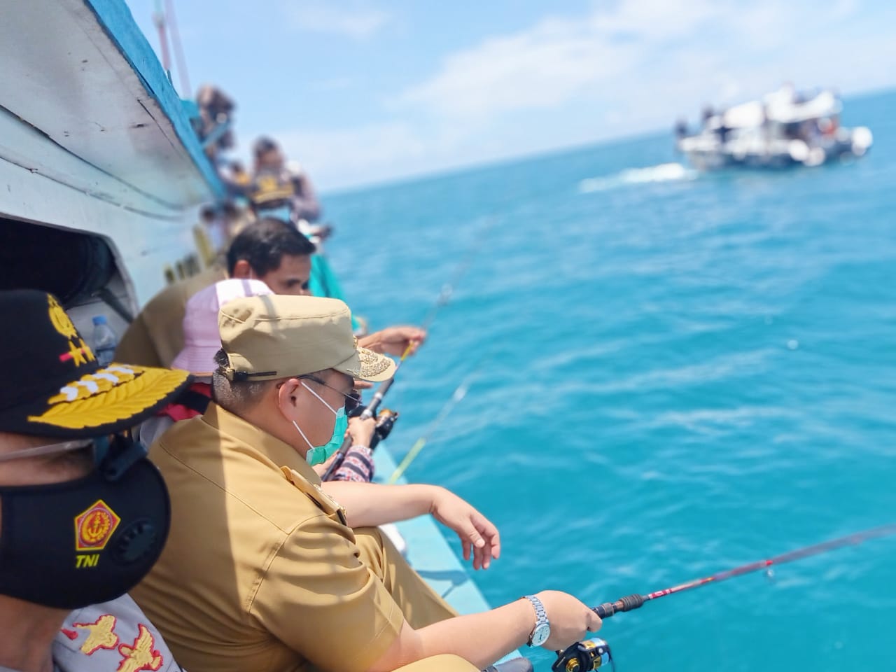 Usai melakukan penurunan Rumpon, Gubernur Erzaldi bersama rombongan menyempatkan untuk mancing gowing to fishing di beberapa titik lokasi pelepasan.