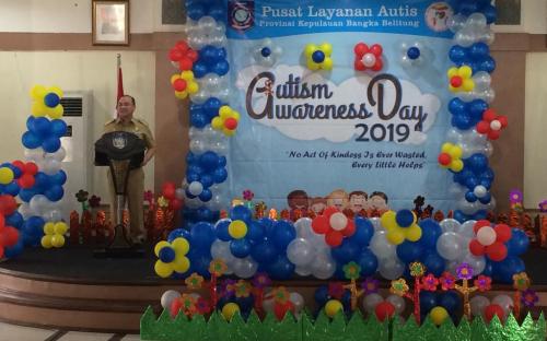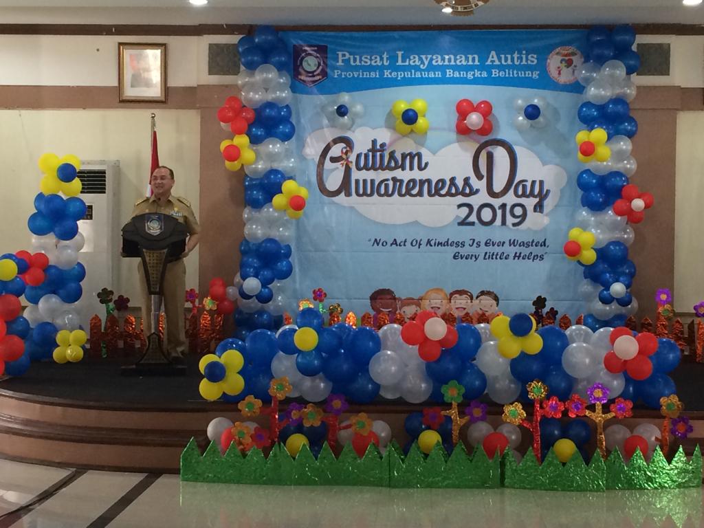 Pangkalpinang — Dinas Pendidikan Provinsi Kepulauan Bangka Belitung melalui Pusat Layanan Autis (PLA) memperingati Hari Autis Sedunia yang diselenggarakan di Gedung Mahligai Rumah Dinas Gubernur Kepulauan Bangka Belitung, Selasa (9/4/2019). Hari Autis yang seyogyanya diperingati pada setiap tanggal 2 April dibuka secara resmi secara resmi oleh Gubernur Kepulauan Bangka Belitung, Erzaldi Rosman.