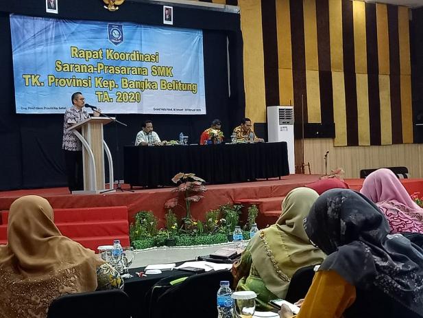 Rapat Koordinasi Sarana dan Prasarana SMK Tingkat Provinsi Kepulauan Bangka Belitung Tahun 2020 dibuka secara resmi oleh Kepala Dinas Pendidikan, Muhammad Soleh di Ruang Pertemuan Hotel Grandvella, Pangkalanbaru, Kamis (30/1).