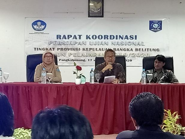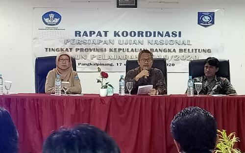 Senin, (17/2), Dinas Pendidikan Provinsi Kepulauan Bangka Belitung menggelar Rapat Koordinasi (Rakor) Persiapan Ujian Nasional Tahun Pelajaran 2019/2020 Jenjang SMA/SMK/SLB se-Bangka Belitung selama 3 hari, mulai dari tanggal 17 Februari-19 Februari 2020 yang diselenggarakan di Hotel Bangka City, Pangkalpinang.