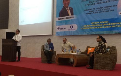 Menteri Komunikasi dan Informatika RI, Rudiantara menginginkan agar seluruh siswa dan mahasiswa Bangka Belitung cerdas dalam penggunaan teknologi digitalisasi, khususnya terhadap perkembangan informasi yang terus bergerak cepat, hal itu disampaikannya pada saat memberikan pengarahan kepada 450 Mahasiswa pada kegiatan Seminar Go Digitalisasi di Gale-Gale Ballroom, Pangkalpinang, Selasa (6/3/2018) siang hari.