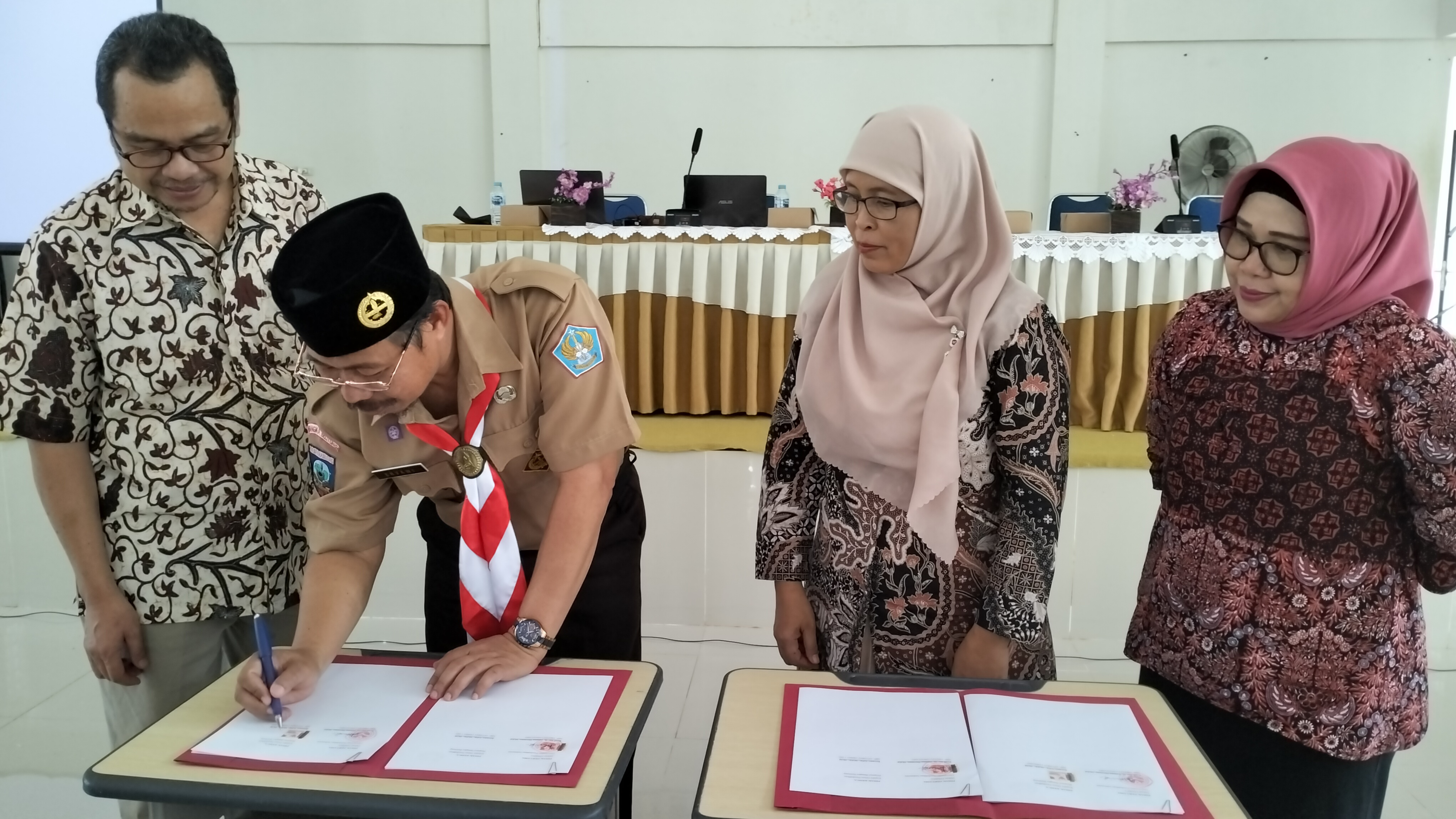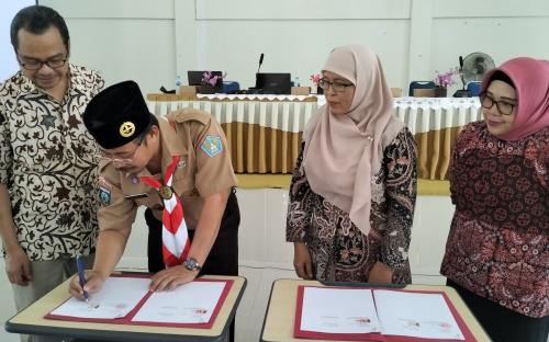 Kepala Dinas Pendidikan Provinsi Kepulauan Bangka Belitung, Ervawi melakukan penandatanganan Memorandum of Agreement (MoA) dengan Ketua Prodi Matematika Fakultas Pendidikan Matematika dan Ilmu Pengetahuan Alam Universitas Pendidikan Indonesia, didampingi Sekretaris Prodi Pendidikan Matematika, Dr. Entit Puspita, M.Si, di Ruang Pertemuan SMA N 2 Pangkalpinang, Senin (11/9/2023).