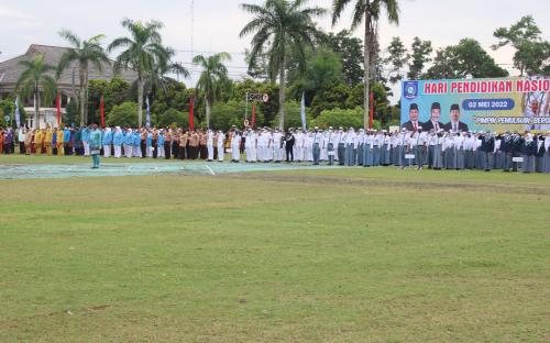 Pangkalpinang – Hari ini, 13 Mei 2022 upacara peringatan Hardiknas 2022 dilaksanakan, sebab pada tanggal 2 Mei 2022 bertepatan dengan Hari Raya Idulfitri 1443 H. Upacara diselenggarakan secara tatap muka terbatas, minimalis, dan dengan protokol kesehatan sejak pukul 08.00 WIB, tema peringatan Hardiknas tahun ini adalah "Pimpin Pemulihan Bergerak untuk Merdeka Belajar"