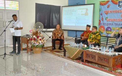 Penjabat (Pj) Gubernur Kepulauan Bangka Belitung, Suganda Pasaribu didampingi Bunda PAUD Provinsi Kepulauan Bangka Belitung, Maya Suganda Pasaribu memberikan apresiasi terhadap kegiatan Sosialisasi Transisi PAUD ke SD Menyenangkan yang diselenggarakan di Ruang Pertemuan SLB N Sungailiat, Kamis (26/10/2023).