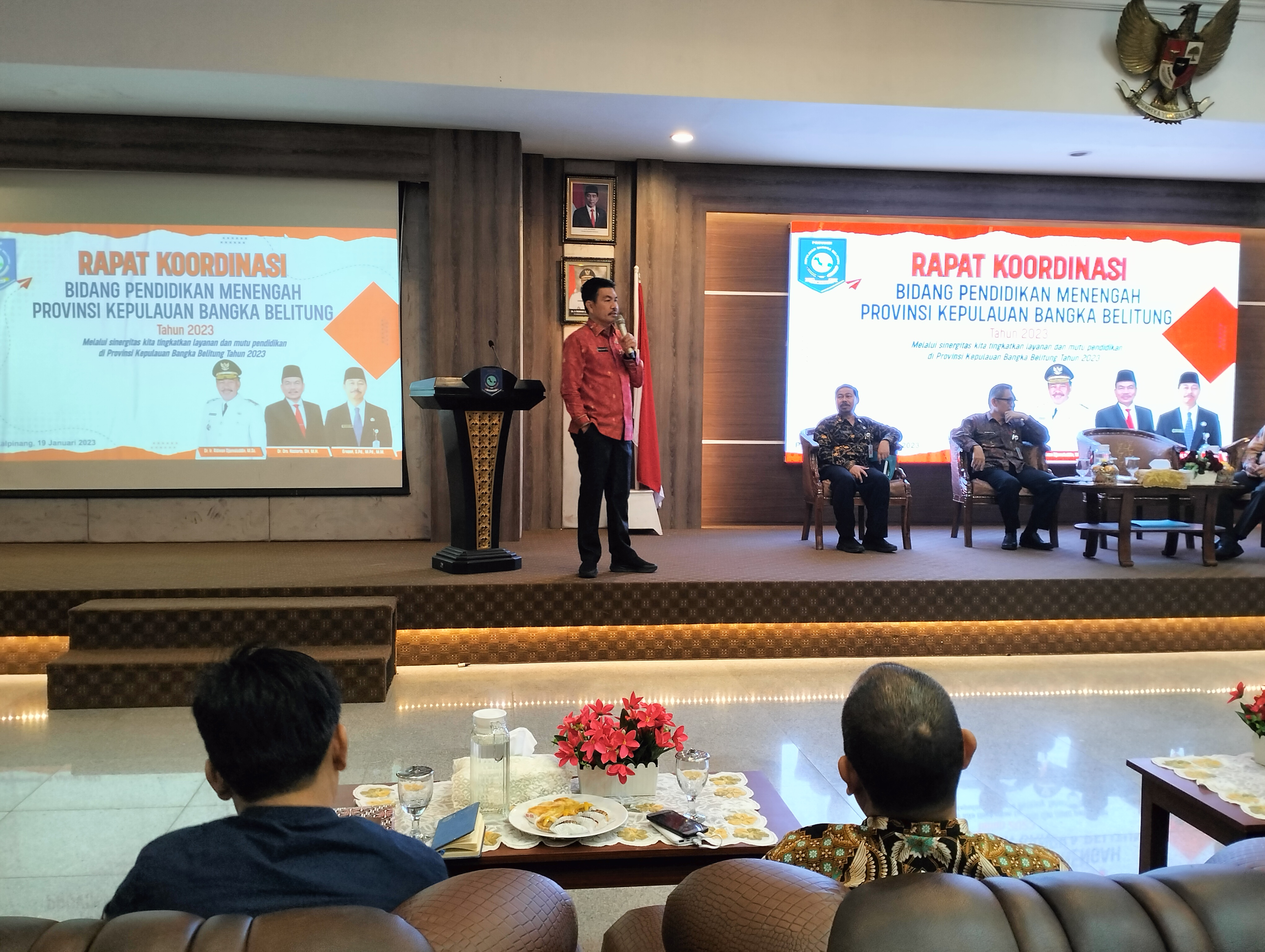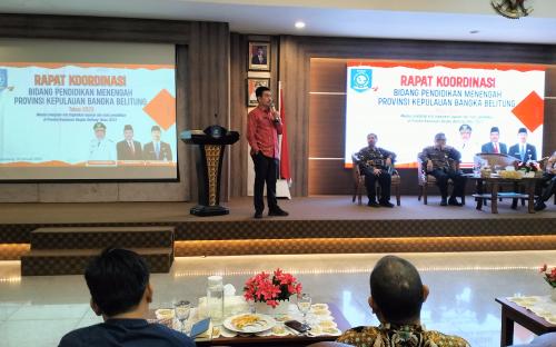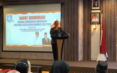 Dinas Pendidikan Bangka Belitung menggelar Rapat Koordinasi Pembinaan Tenaga Kependidikan Jenjang SMA/SMK/SLB se-Babel yang diselenggarakan di lantai 3 Ruang Pertemuan Pasir Padi, Kantor Gubernur Kepulauan Bangka Belitung, Kamis (19/01/2023).