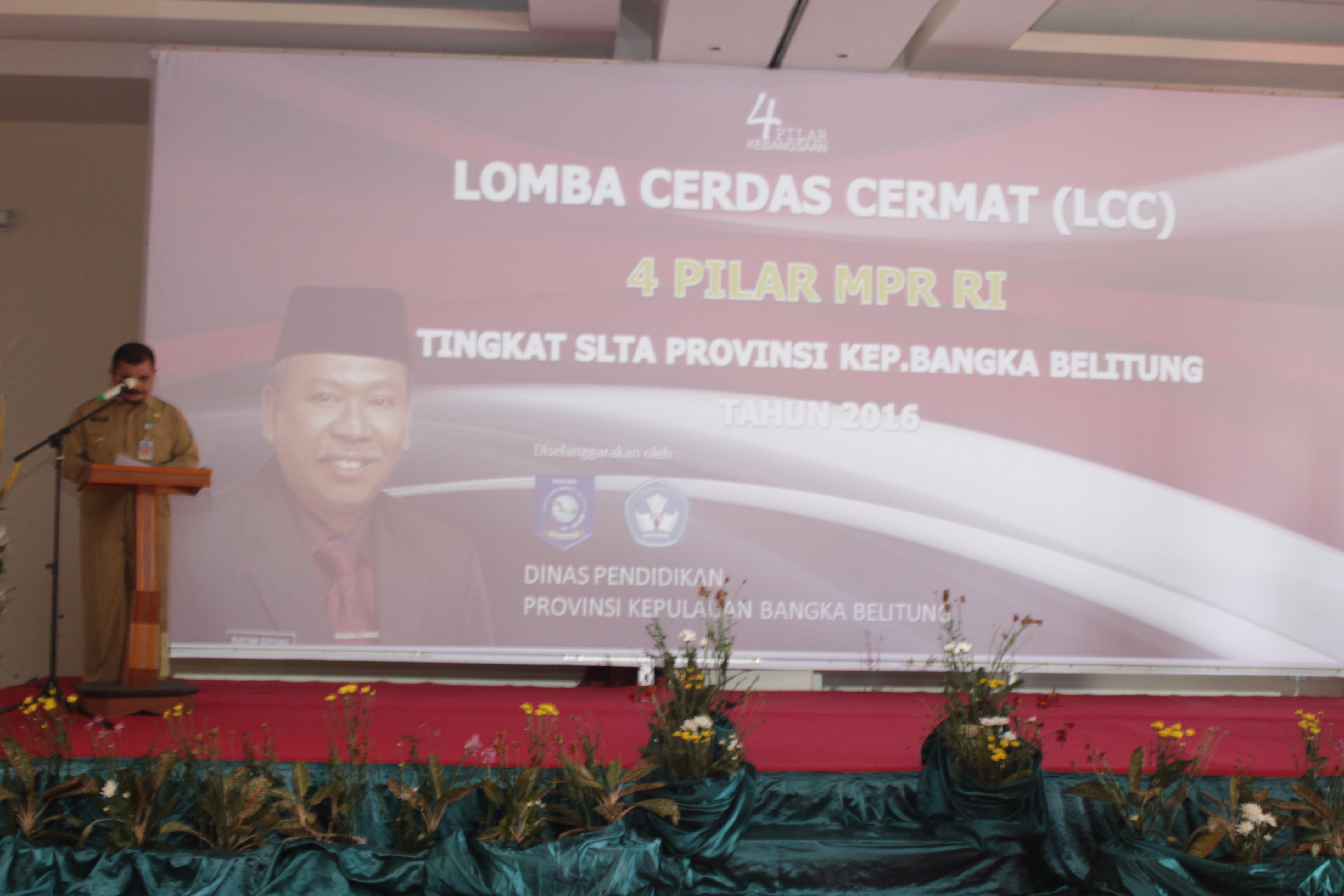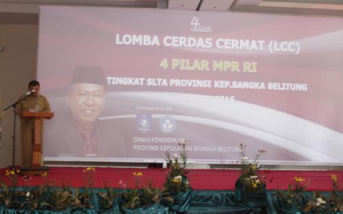 Melihat pentingnya kegiatan ini dilaksanakan bagi generasi muda, khususnya Siswa Tingkat Sekolah Lanjutan Tingkat Atas (SLTA), maka Dinas Pendidikan Provinsi Kepulauan Bangka Belitung melalui Bidang Pendidikan Menengah dan Tinggi Seksi Sekolah Menengah Atas (SMA) kembali menyelenggarakan Perlombaan Cerdas Cermat 4 Pilar MPR RI (Pancasila, Undang-Undang Dasar Negara Republik Indonesia Tahun 1945, Negara Kesatuan Republik Indonesia, Bhinneka Tunggal Ika, dan Ketetapan MPR) Tingkat SLTA Provinsi Kepulauan Bangka Belitung Tahun 2016. Kegiatan ini diselenggarakan di Hotel Aksi Pangkalpinang, selama 3 (tiga) hari mulai 15-17 Februari 2016. Peserta diikuti oleh 18 (delapan belas) orang dari tingkat SLTA/SMK se-Provinsi Kepulauan Bangka Belitung, didampingi 1 (satu) orang guru pendamping.