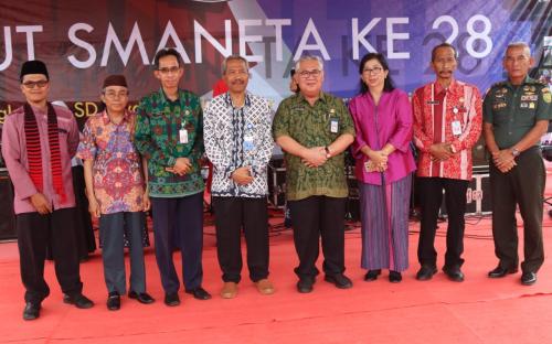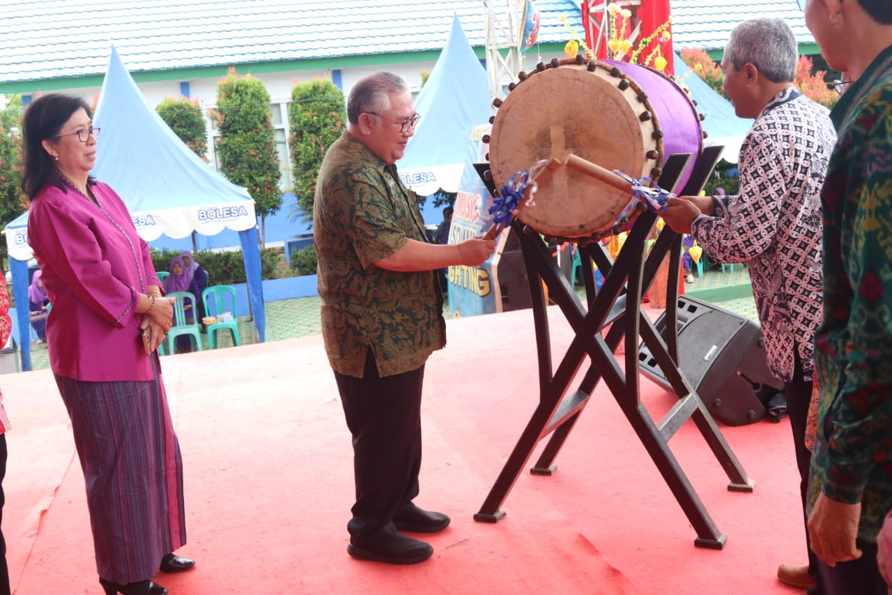 Pangkalpinang - Sekretaris Daerah Provinsi Kepulauan Bangka Belitung, Yulizar Adnan memukul bedug tanda dibukanya acara HUT SMA Negeri 3 Pangkalpinang ke-28 di Halaman SMA Negeri 3 Pangkalpinang. Acara HUT SMANETA ke-28 ini bertemakan meningkatkan SDM Berkualitas dan Berperestasi di Era 4.0.