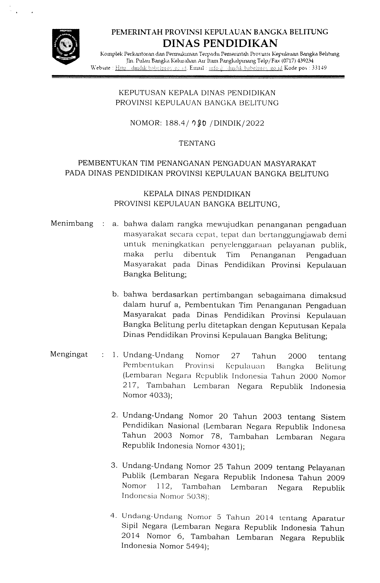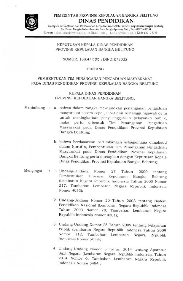 SK Pengaduan Layanan