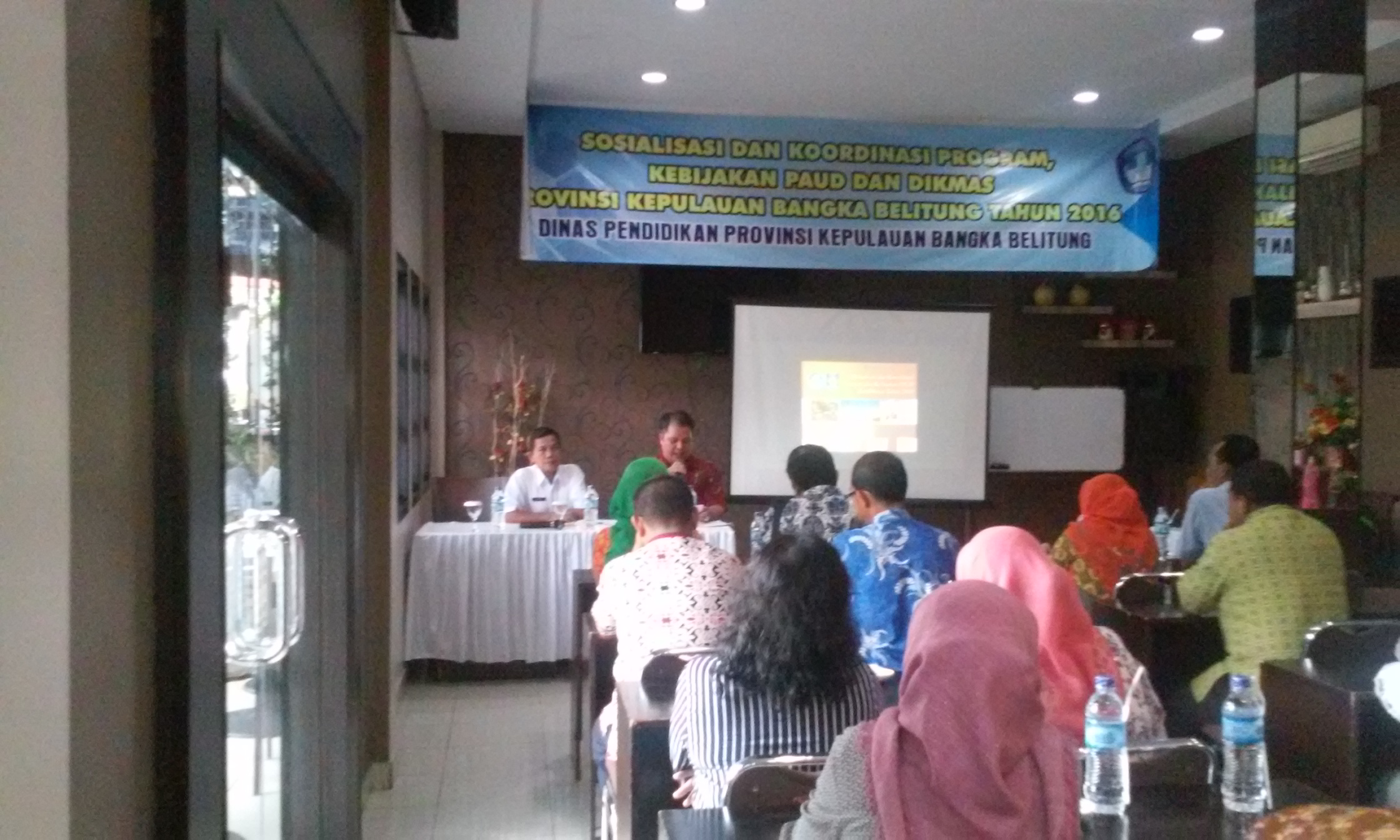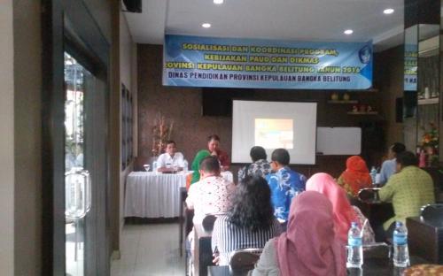 Pangkalpinang-Terkoordinasi dengan baik antara pemangku kepentingan terkait dalam melaksanakan program PAUD dan DIKMAS Tahun 2016 di tingkat Kabupaten/Kota, Provinsi dan Pusat, menjadi tujuan umum dalam kegiatan Sosialisasi dan Koordinasi program PAUD dan DIKMAS yang diselenggarakan di Hotel Puri 56 Pangkalpinang, Senin s.d Rabu (2 s.d 4 Mei 2016).