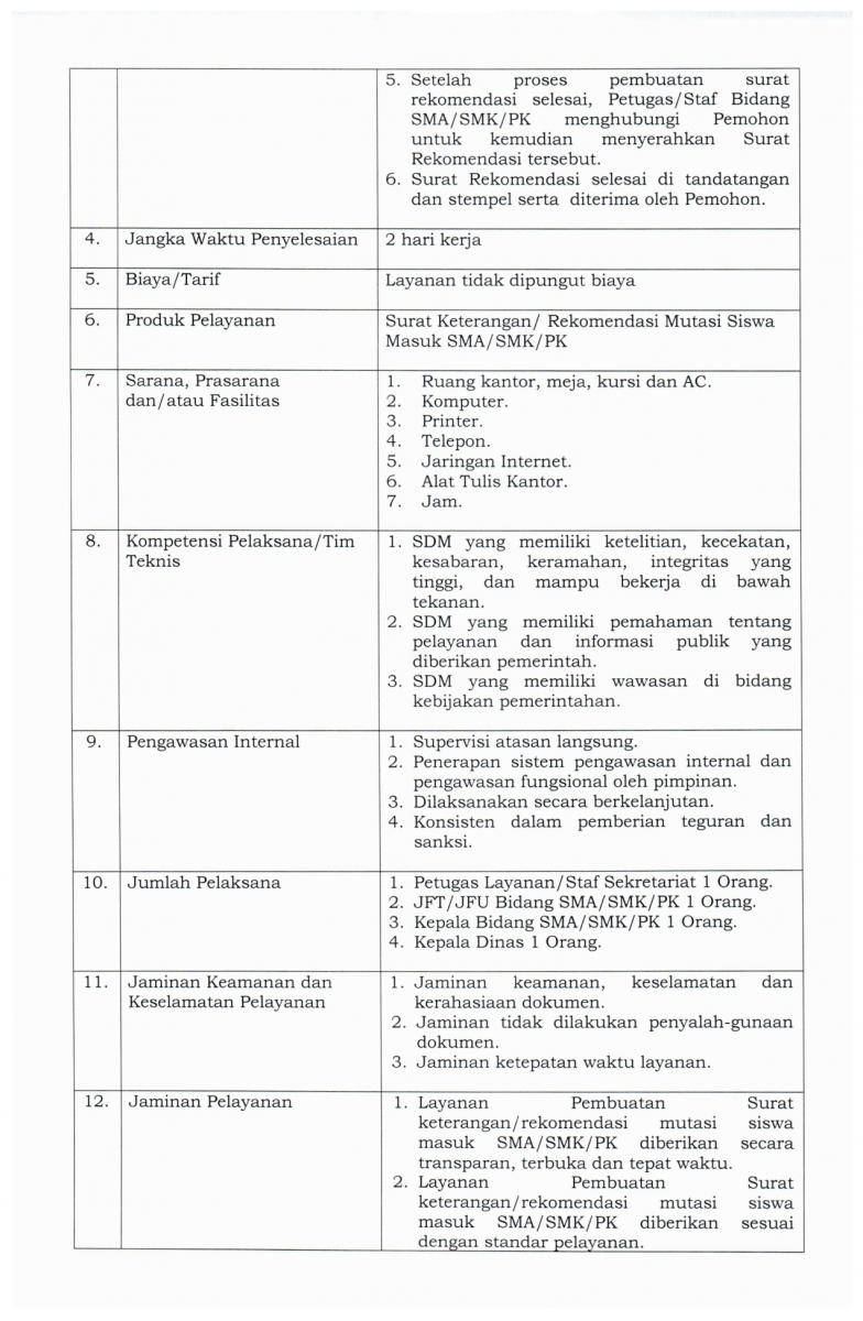 STANDART PELAYANAN LAYANAN PEMBUATAN SURAT KETERANGAN/REKOMENDASI MUTASI SISWA MASUK SMA/SMK/PK 3998 reads