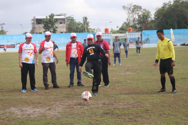Pangkalpinang - Gubernur Bangka Belitung, Erzaldi Rosman menyempatkan waktu hadir beberapa menit untuk melakukan tendangan pertama (Kick Off) yang membuat suasana stadion riuh seketika. Kick Off sebagai tanda dimulainya babak terakhir pertandingan Gala Siswa Indonesia (GSI) Jenjang SMP Tingkat Provinsi, berlangsung di Stadion Depati Amir, Jumat (27/9).