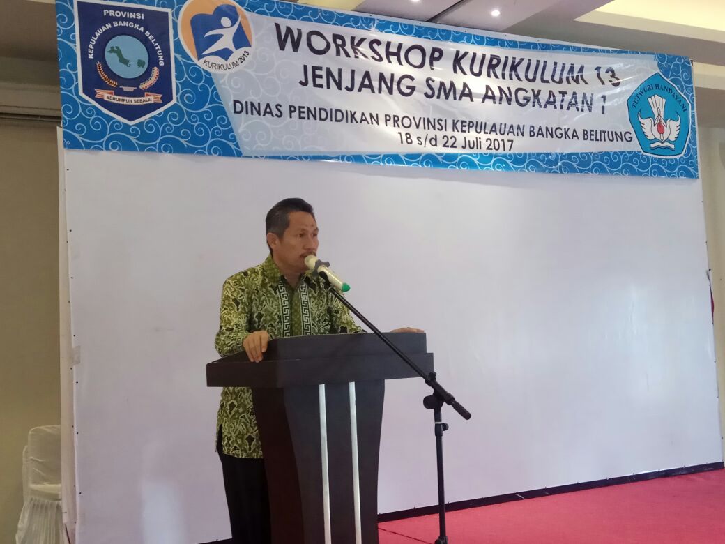 PANGKALPINANG, Sebanyak 165 guru SMA se-Provinsi Kepulauan Bangka Belitung mengikuti kegiatan Workshop Kurikulum 2013 (K13) Jenjang SMA Tahun 2017 di Hotel Aksi Natural Resort. Kegiatan ini dilaksanakan selama 5 (lima) hari mulai tanggal 14 juli s.d 18 juli 2017 dan bertujuan bertujuan untuk meningkatkan profesionalisme guru dalam proses pengajaran sehingga dapat meningkatkan kualitas pendidikan di Bumi serumpun Sebalai.